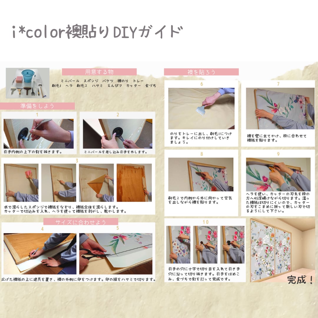 DIY用襖貼りガイド付なので、簡単にDIYをお楽しみいただけます。